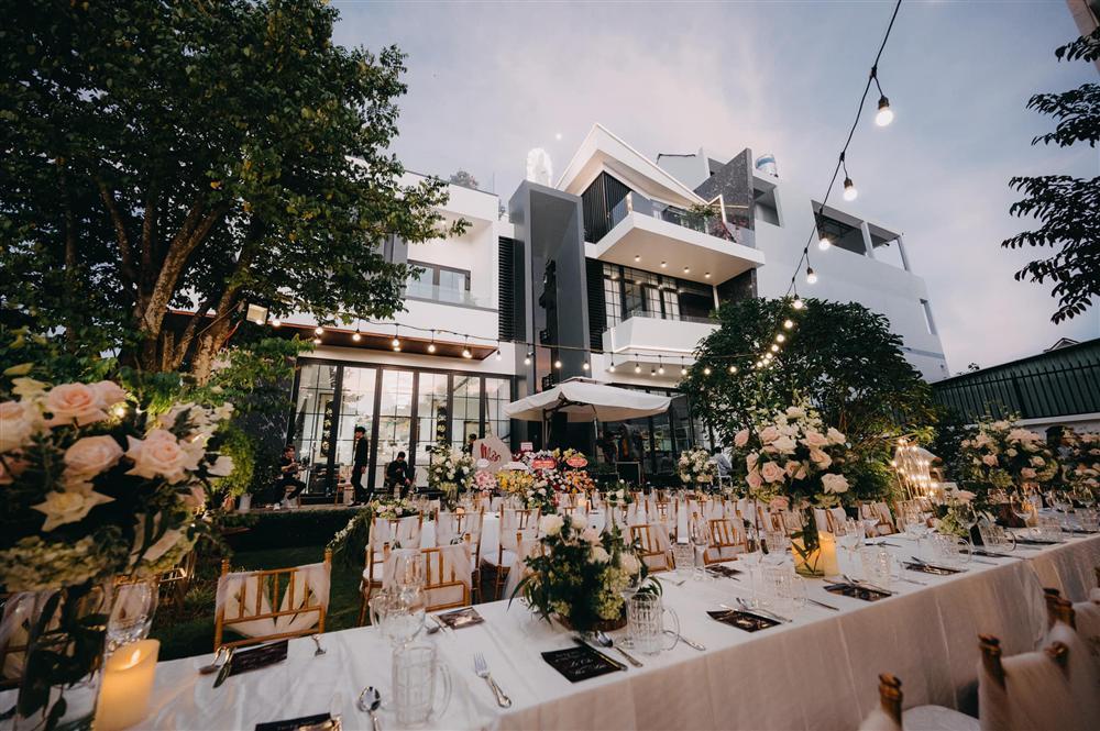 Sân vườn biệt thự có thể tổ chức được những bữa tiệc lớn.