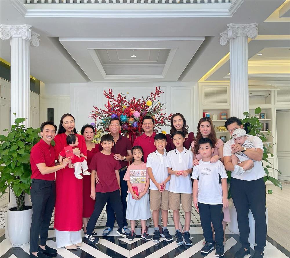 Trong bức ảnh đón Tết Cường Đô La chia sẻ vào tháng 2/2021, “người đàn bà thép” đứng cạnh con trai và nàng dâu Đàm Thu Trang, cùng 2 cháu nội Subeo và Suchin.