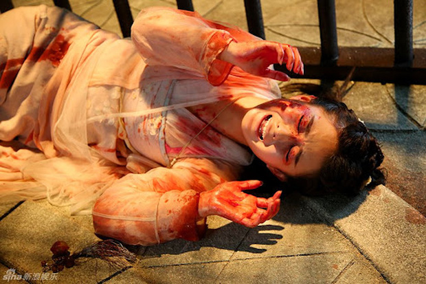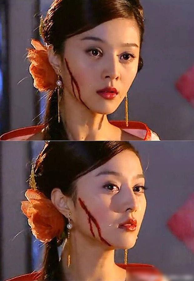 1. Trong phim Hoa Thiên Cốt, Tiểu Cốt ( Triệu Lệ Dĩnh ) bị Nghê Mạn Thiên (Tưởng Hân) tạt nước của bể Tuyệt Tình, khiến cô bị hủy nhan sắc với cả gương mặt đầy máu.
