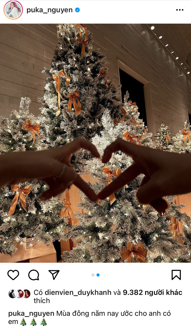 Cho đến tối ngày 16/12, Puka bất ngờ “gây nổ” khi khoe ảnh đan tay trái tim với ai đó giấu mặt, xác nhận “hoa có chủ” đúng dịp Noel.